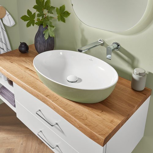 Die 2morrow Massivholz-Platte aus solider Eiche-Hell bringt ein Stück einzigartige Natur ins Bad und ist für den täglichen Einsatz optimal vorbereitet. Dank ihres Lack-Finishs gut geschützt vor Schmutz, Kratzern und Feuchtigkeit ist sie ein dauerhaftes Highlight. Zusammen mit dem unifarbenen Badmöbel und dem Lichtspiegel Reflection LUNA mit seinen weichen Rundungen und der indirekten Beleuchtung entfaltet sich ihr unverwechselbarer Charme.