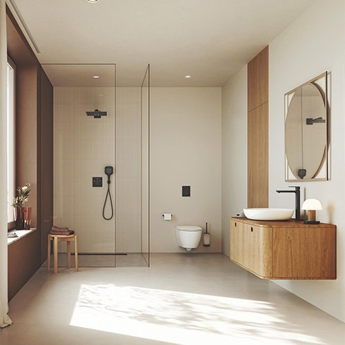 Für alle, die ein Statement setzen möchten, bietet die Kollektion zudem die schwarzen Oberflächen Matt Black und Phantom Black. Die Black-Varianten erweitern die GROHE Colors Kollektion um ausdrucksstarke Optionen, die sich nahtlos in jedes Badezimmerkonzept integrieren lassen. Ob Armaturen, Duschsysteme, Thermostate, Betätigungsplatten oder Accessoires – die durchgängige Farbgestaltung sorgt für ein harmonisches, hochwertiges Gesamtbild.